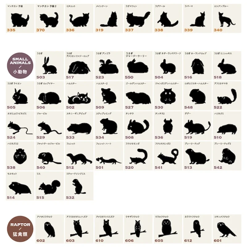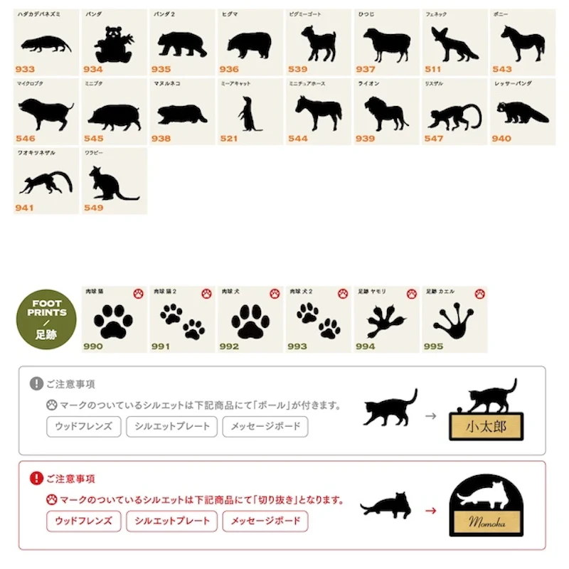犬や猫、小動物から鳥類、爬虫類、両生類も!500種類以上の多種多様な動物シルエットの中から"うちの子"を見つけて、形、文字、色もカスタマイズ!迷子札からインテリア雑貨まで世界にひとつの"うちの子"グッズが作れます。