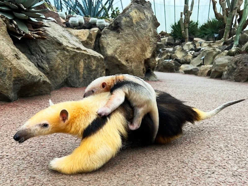 伊豆シャボテン動物公園の「シャボテン温室」内の展示場にて、ミナミコアリクイの赤ちゃんが2025年1月8日に1頭誕生しました。