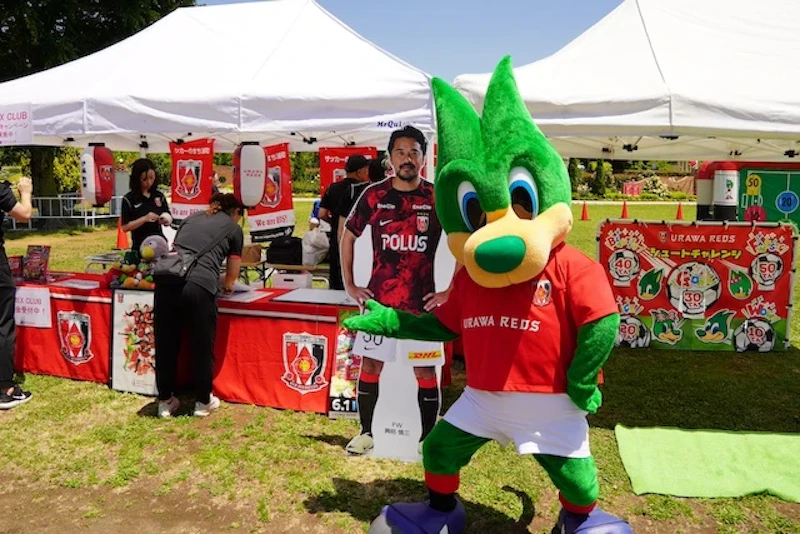 ハートフルガーデン横の芝生エリアには、浦和レッズブースが出展。オリジナルのミニゲームを通じて楽しくチームを応援できるコンテンツが用意されており、参加者には浦和レッズオリジナルノベルティがプレゼントされる(※数に限りあり、なくなり次第終了)。