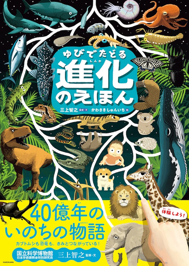『ゆびでたどる進化のえほん』(監修・文:三上智之、絵:かわさきしゅんいち)の重版が決定しました。