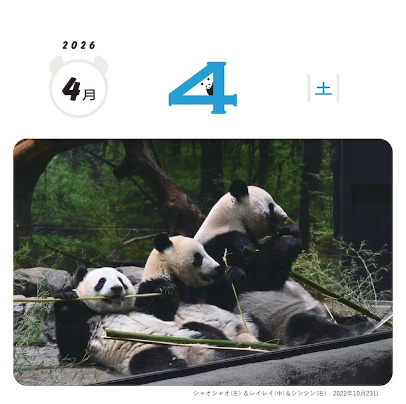 週に5日はシャンシャンが登場するカレンダーですが、シャンシャンだけでなく、リーリーとシンシン、そしてシャオシャオとレイレイも時々ひょっこり登場。みんないっしょの日めくりカレンダーとなっています。