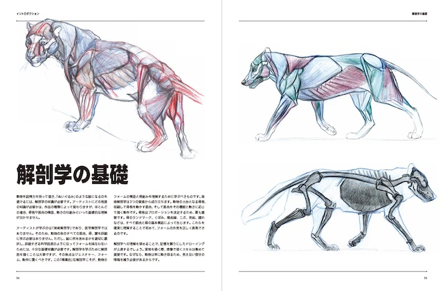 「動物解剖学」を習得することは、躍動感、そして説得力のある動物を描くための基礎となることが示されています。実物をスケッチしてリアルな描写を捉える場合でも、想像からデザインする場合でも、動物の姿を理解することは不可欠とされています。
