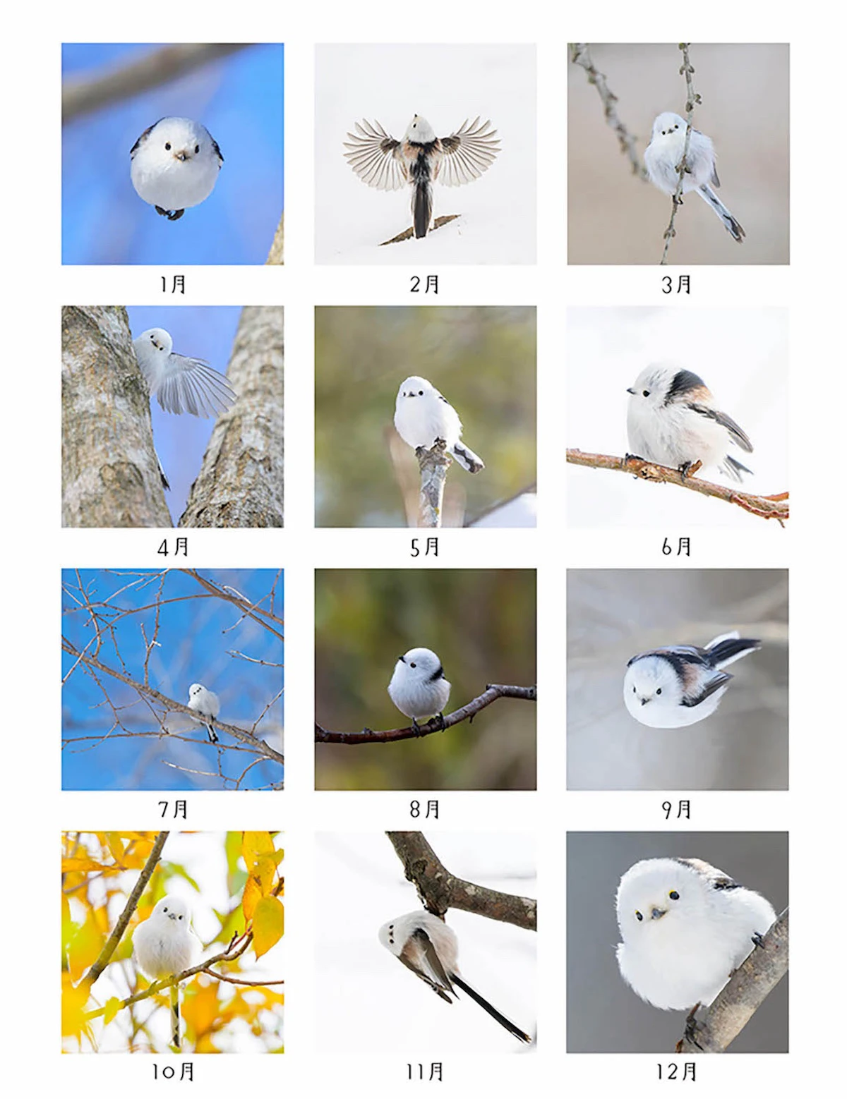 北海道在住のカメラマン・吉永勝啓氏が新たに撮りおろしたシマエナガの厳選ベストショットが収録されています。壁掛け版と卓上版の両方に、発売記念の特製シマエナガシールが付属しています。