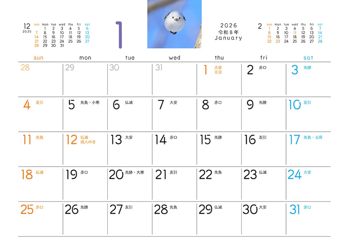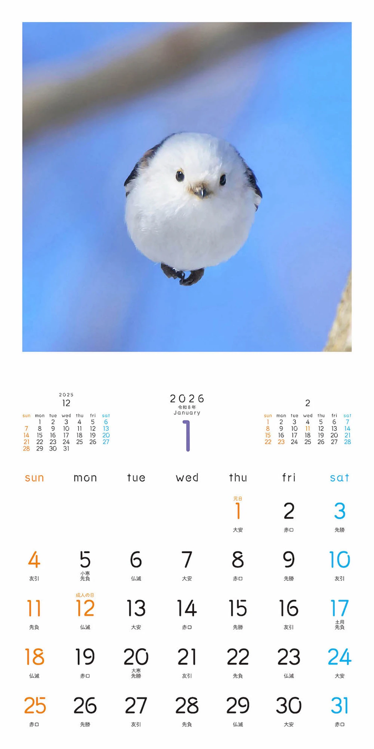 シマエナガが一年間楽しめる2026年カレンダーが発売中で、大好評により重版出来となりました。