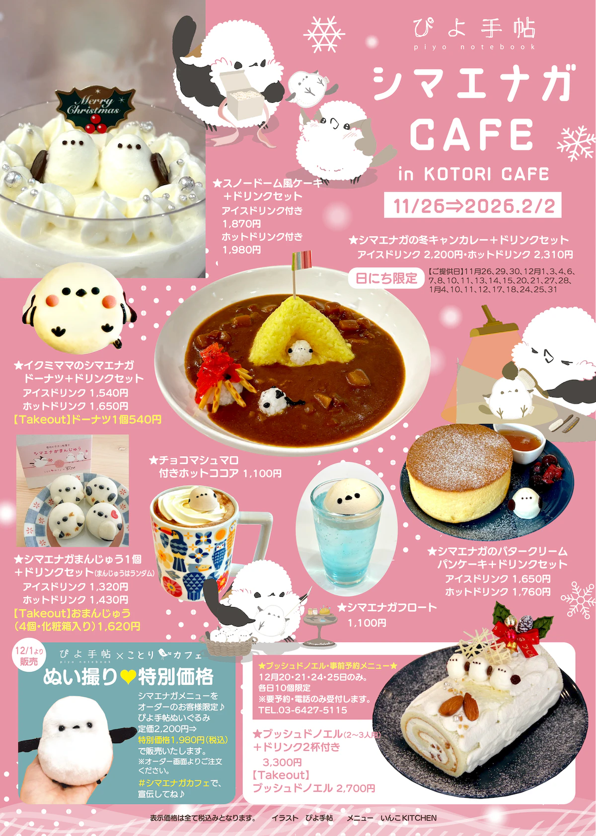 ことりカフェ上野本店では、限定30冊が先行販売されます。無くなり次第終了となります。同店では2月2日まで「シマエナガカフェ」も開催されています。
