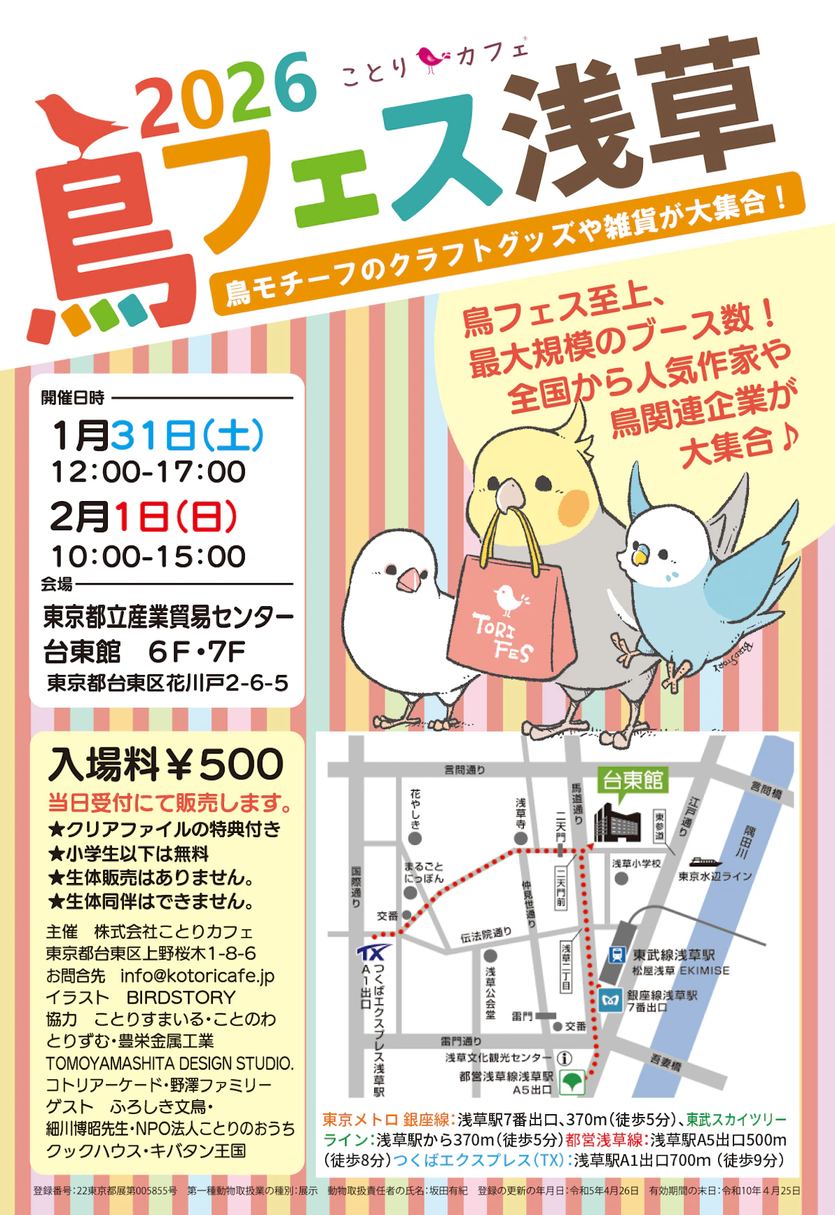 鳥フェス浅草2026では、限定20冊が先行販売されます。鳥フェス至上最多出展ブース数となる同イベントでは、全国より人気クリエイターや鳥関連企業が集まり、鳥モチーフの雑貨やハンドメイド作品、小鳥のおもちゃやフードなどが販売されます。