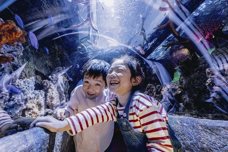 「シーライフ名古屋」は2026年1月20日(火)、『名古屋シーライフ水族館』へ施設名称が変更されました。"こどもの成長をおうえんする水族館"をコンセプトに、バックヤード体験ツアー、エイショーやダイバーショー、生き物たちと触れ合うことができるゾーンなど、ゲスト参加型のアクティビティが充実しています。施設名称変更に伴い、11の趣向を凝らした展示ゾーンの名称が「であいの海/ふるさとの川/ふれあいの海/名古屋のみなと/タツノオトシゴの森/サンゴの海/エイの浜辺/クラゲの海/かいぞくせん/りゅうぐうじょう/魚のおえかき」に変更されました。