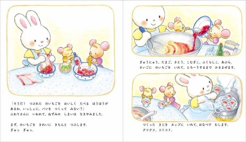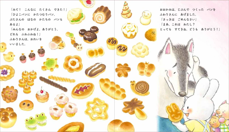 ふわふわうさぎのふわりさんが開いたパン屋さんに、今日もさまざまなお客さんがやってきます。