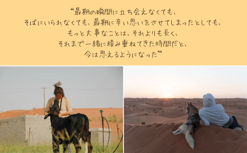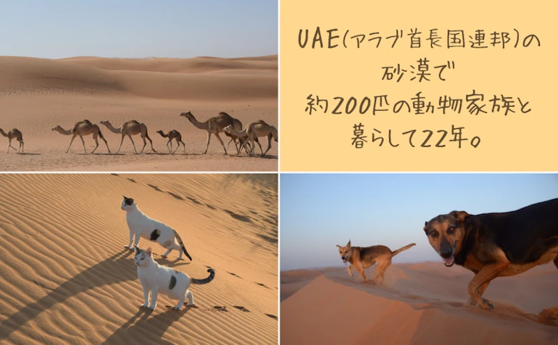 うさぎ、鳩、犬、猫、ガゼル、ラクダ、ヤギ、鶏、牛──UAE(アラブ首長国連邦)の砂漠で約200匹の動物たちと暮らして22年になる、美奈子アルケトビさんのフォトエッセイ『大事な存在の死にどう向き合うか、砂漠で毎日考えている』が、光文社より2026年2月18日(水)に発売されます。予約殺到により、発売前重版が決定しました。