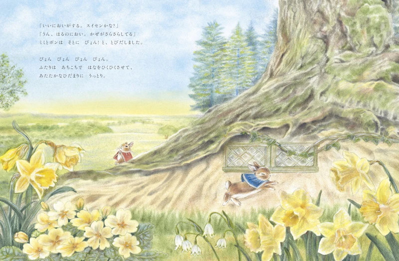 絵を担当したしらとあきこ氏は、うさぎ専門誌の表紙や挿し絵を手がけるイラストレーターです。20年以上うさぎと暮らしてきた経験を持ちます。本作では、花や風を感じられるほど細部まで描き込んだパステル画で春の情景を表現しています。
