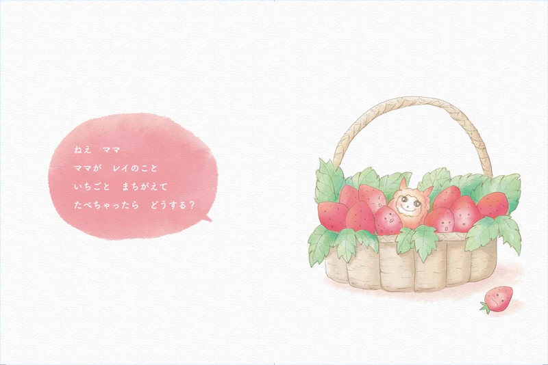 本書の主人公は、アルパカの子ども「レイちゃん」です。レイちゃんがママアルパカに「もし、わたしがトイレに流されちゃったらどうする?」「イチゴと間違えて食べられちゃったらどうする?」「もしママがわたしのことを忘れちゃったらどうする?」といった予想外の質問を投げかけます。これらの「ヘンテコなしつもん」は、著者が実際のアルパカ親子のしぐさや関係性を日々観察してきた視点から生まれたものです。