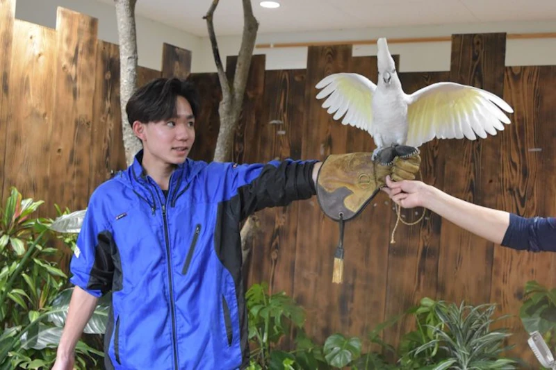 バードパフォーマンスショーに出演するオウムやインコを間近で観察できるイベントです。オウムを腕に乗せて一緒に写真を撮ったり、鳥がおみくじを引いて運んでくる「鳥みくじ」を体験したりできます。