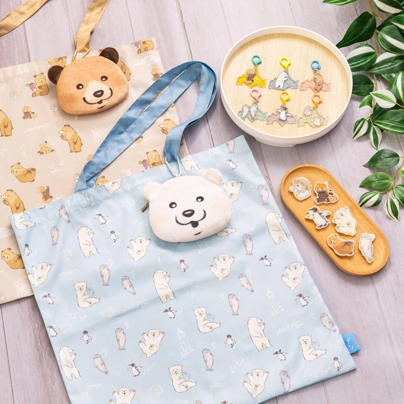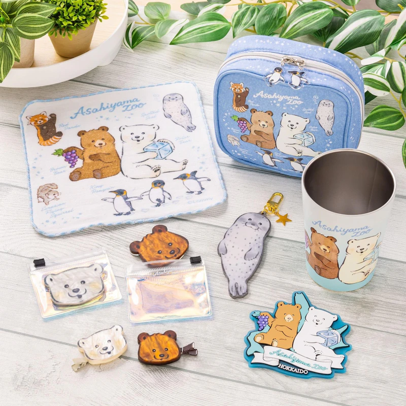 デザインには、氷を手にするホッキョクグマ、円柱水槽を泳ぐゴマフアザラシ、冬の「ペンギンの散歩」など、旭山動物園を象徴するシーンや動物たちが描かれています。ラインナップには、ぬいぐるみマスコット、ステッカー、アクリルチャーム、ポーチなど、日常で動物たちを身近に感じられる商品がそろいます。