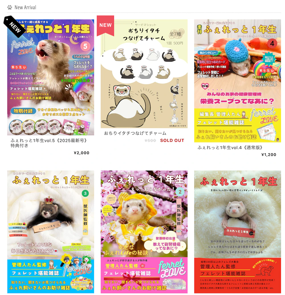 ネットのBASEショップと、埼玉県浦和区のフェレット専門ペットショップ「フェレットリンク&ラビットリンク」さん、愛知県小牧市の小動物専門店「shop fuu」さんで取り扱っていただいています。先月は「わいわい祭り」というフェレットのイベントに委託販売で出しました。