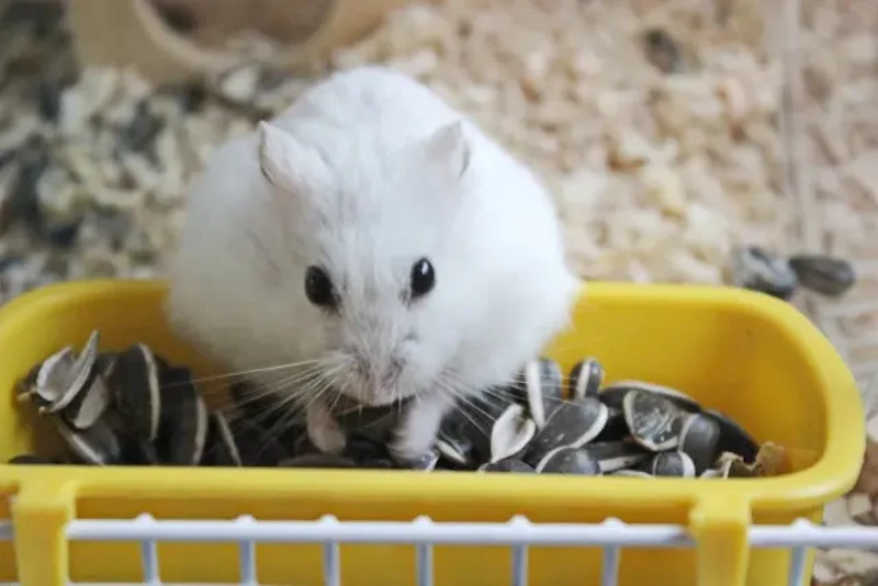 種子類は脂肪分が多いため、与える量には注意が必要です。ゴールデンハムスターでヒマワリの種なら1日2〜3粒、ジャンガリアンなどの小型種はさらに少なめの1〜2粒が目安です。おやつの総カロリーが1日の食事量の10%を超えないように意識しましょう。手乗り練習用のおやつは、普段の餌の量から差し引いて計算するとカロリーの摂りすぎを防げます。毎日続けて与えず、練習しない日を挟んで頻度を調整することも体重管理に役立ちます。