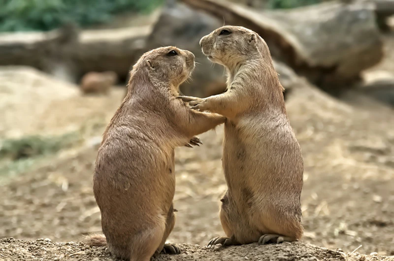プレーリードッグは群れで暮らす社会性の高い動物です。仲間同士で「キスグリーティング」と呼ばれる口と口を合わせる挨拶行動をしたり、互いに毛づくろいをしたりして絆を深めます。飼育下で1頭だけで飼う場合、飼い主との日々のスキンシップが社会的欲求を満たす一助になると考えられています。ただし、人間が同種の仲間を完全に代替できるわけではなく、個体によっては単独飼育で寂しさからくる問題行動(毛をむしる、同じ場所をぐるぐる回るなど)が出ることもあります。