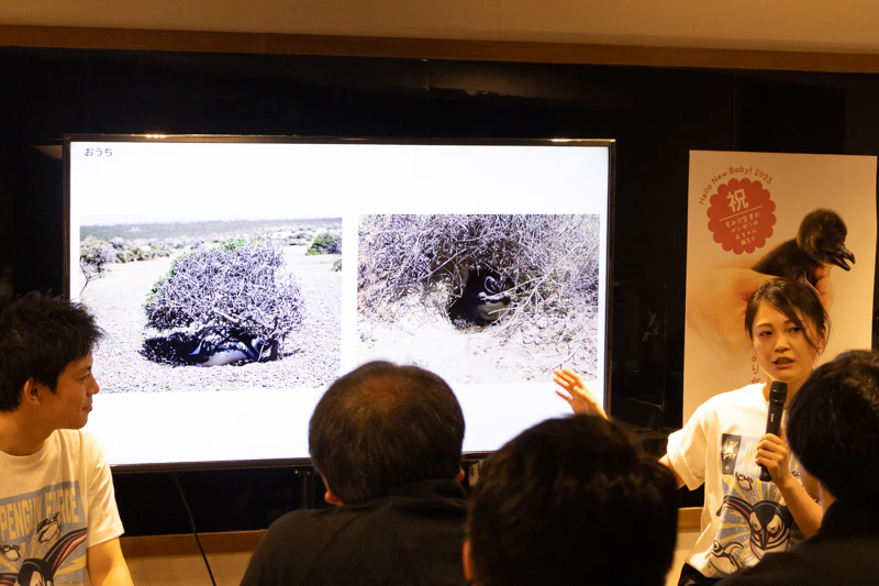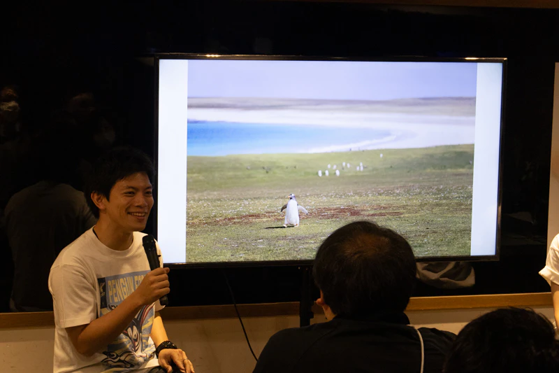 また、同行した研究者から聞いた話として、「19年間同じペアで同じ場所に帰ってきているペンギンがいる」というエピソードも。「水族館では絆が強いのでずっと一緒にいるのは見てきたが、野生下でも半年毎に離れるのに毎年一緒に帰ってくるのはすごい」と感動を語りました。