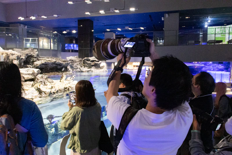 このイベントは、ペンギンを愛するファンを対象に開催された特別イベントで、プロの写真家と飼育スタッフによるトークセッション、オリジナルTシャツのデザイナーによるサイン会、そして閉館後のペンギンエリアでの特別撮影ワークショップが行われました。